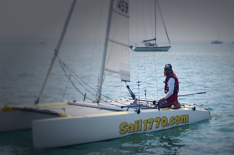 ‘Banana Split’ was customised for sail 1770 to be able to offer high speed sailing in safety. She started life as a racing Nacra 5.8 Catamaran and has an interesting past history including national title wins and time as the Hanoi Clubs race vessel based in Vietnam. We have modified her to include keels for the shallow waterways of Round Hill Creek and added a massive trampoline to the fore-deck to almost double the deck space. She has also had her rigging and sails modified to be able to be sailed by a crew of one. Once you are aboard it’s easy to feel her racing heritage as she is still capable of thrilling speeds, all the while feeling at ease to enjoy the natural beauty that we are so lucky to be surrounded by.